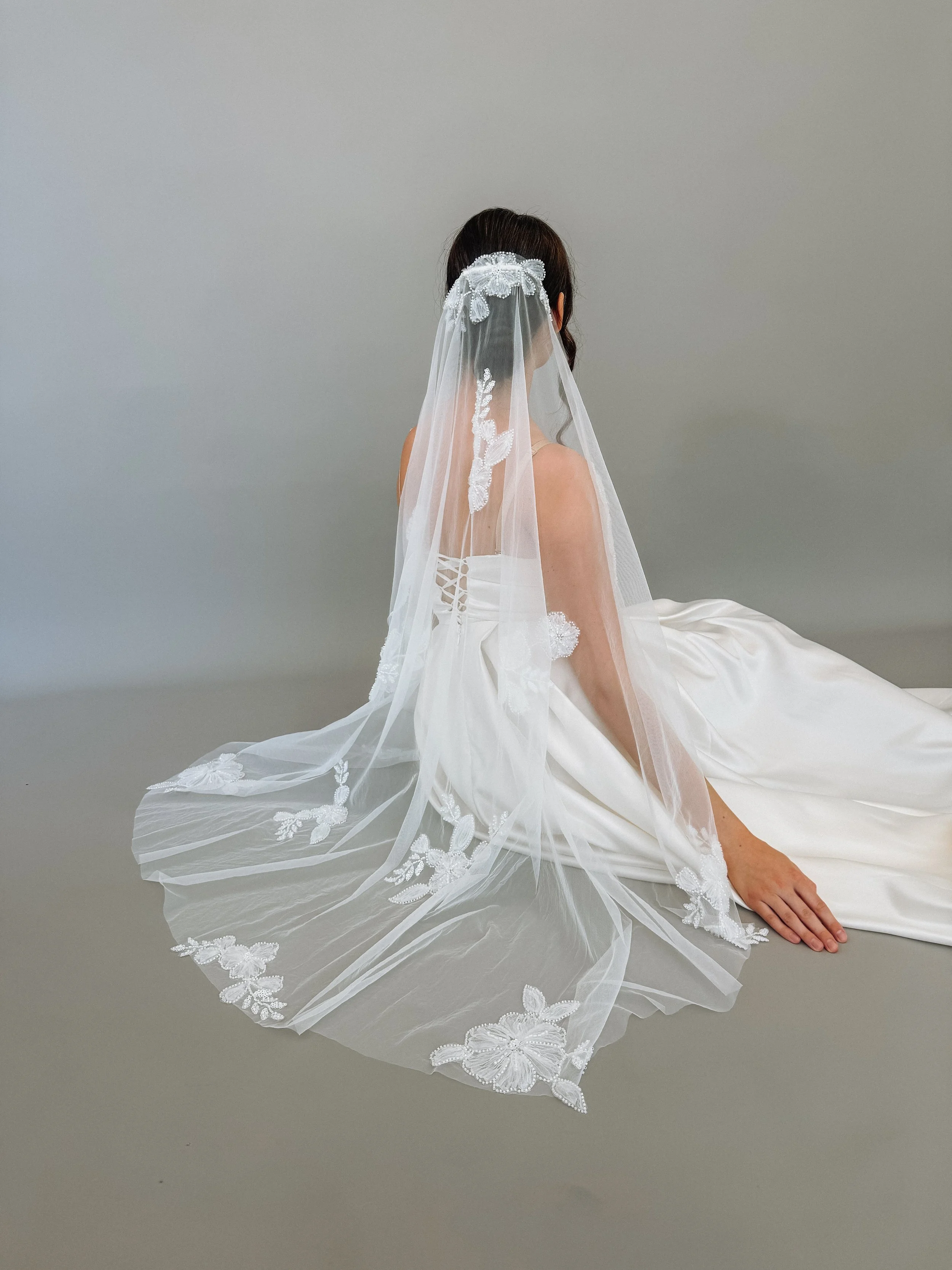 Categories: All Veils Earrings Hair Accessories Swatches All / All Veils Earrings Hair Accessories Swatches Maria - Chantilly Lace Veil from $400.00 Laurie - Silk Organza Veil from $400.00 Fiore - Lace Edge Veil from $450.00 Ellie - Floral Bridal Veil from $280.00 Eliza - Floral Bridal Veil from $280.00 Gloria - Floral Lace Appliqué Blusher Veil from $400.00 Fiorella Veil – Delicate Beaded Floral Appliqué Bridal Veil from $250.00 Bianca - Lace Edge Veil from $400.00 Magnolia - Floral Beaded Mantilla Veil from $250.00 Isabella -Sequin Floral Bridal Veil from $250.00 Azalea - Lace Edge Floral Veil from $400.00 Lazia - Mantilla Veil from $350.00 Beatrice - Floral Bridal Veil from $280.00 Perla – Mantilla Veil with Beaded Floral Lace from $400.00 Sofie – Mantilla Veil with Beaded Floral Lace from $400.00 Lia - Mantilla Floral Veil from $450.00 Mia - Floral Beaded Lace Veil from $260.00 Gardenia - Floral Mantilla Veil from $400.00 Magdalene - Floral Bridal Veil from $280.00 Camellia - Floral Lace Veil from $200.00
